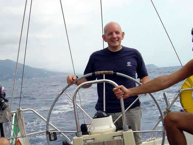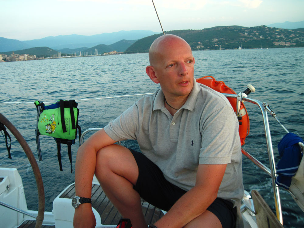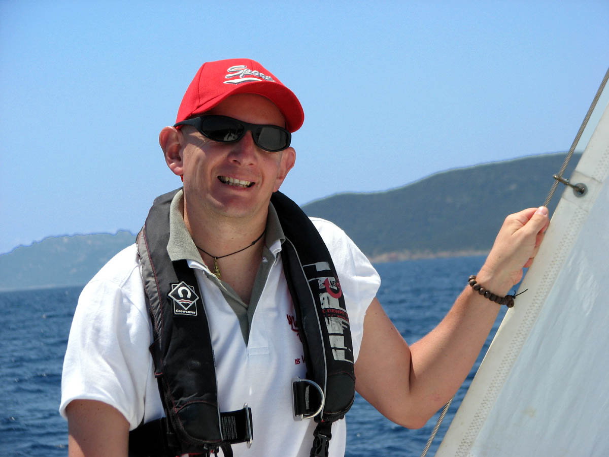 Eccomi poi ancora in divisa da lavoro e in barca a vela in Corsica.